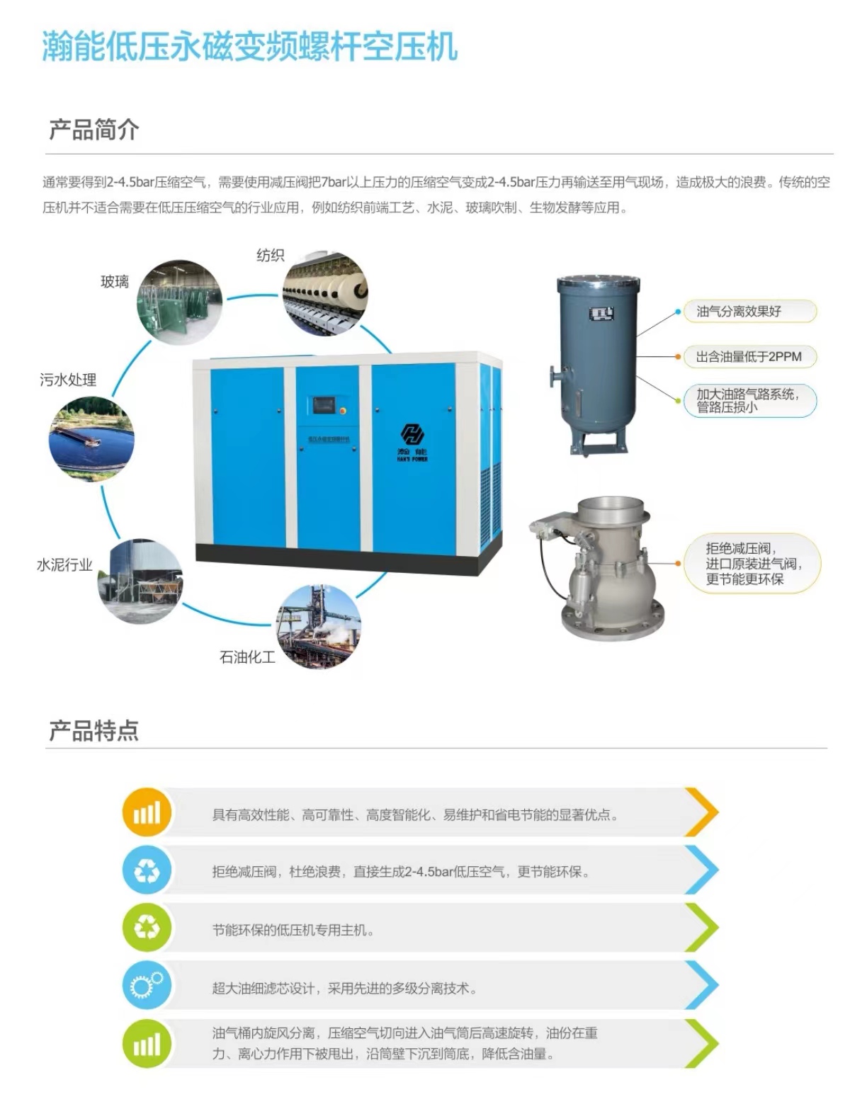 產(chǎn)品可靠、節(jié)能、靜音。已為國內(nèi)多家大型企業(yè)、上市企業(yè)解決全方位空氣集成系統(tǒng),并大量集中出口韓國、印度尼西亞、泰國等國家,并受到客戶好評。